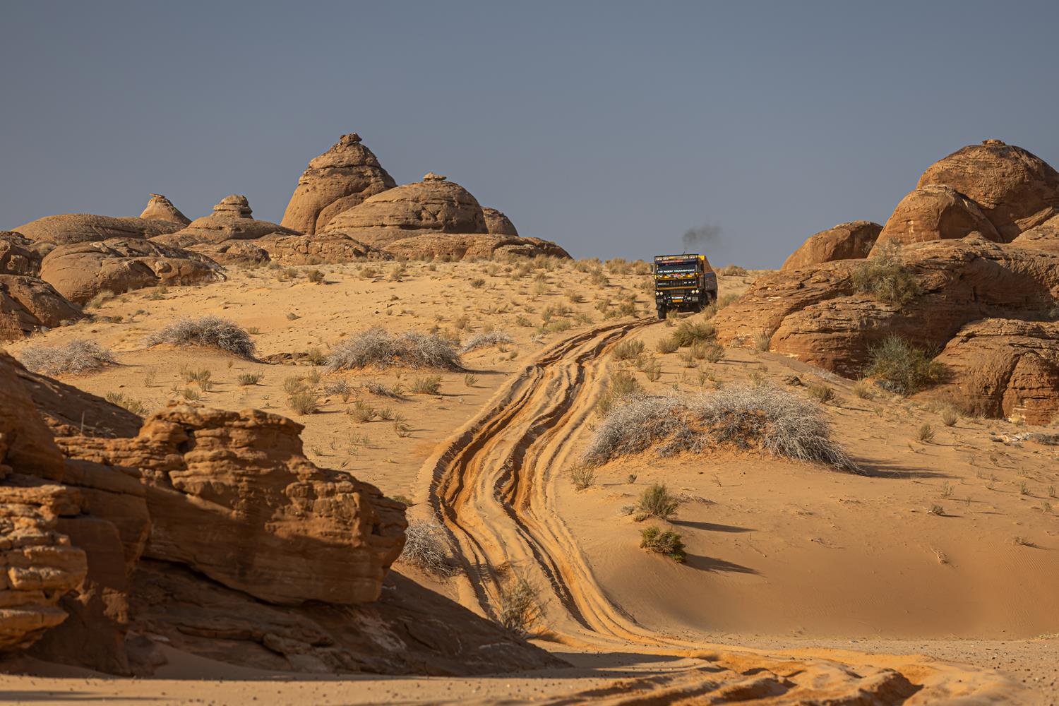 Stage 6 Dakar Classic 2026, prowadzący z Ha’il do Rijadu, był jednym z najdłuższych i najbardziej wymagających dni całego rajdu. Załoga KAMENA Rally Team, startująca historycznym DAF BULL 3300, miała do pokonania aż 917 kilometrów, w tym 547 km odcinków specjalnych.