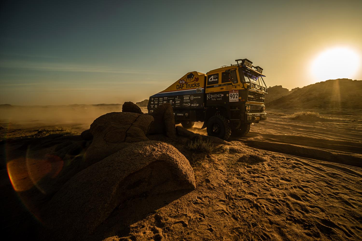 Po sześciu etapach Dakar Classic 2026 KAMENA Rally Team nie tylko regularnie wygrywa w swojej klasie, ale także systematycznie pnie się w klasyfikacji generalnej, potwierdzając, że historyczny DAF BULL 3300 jest jednym z najmocniejszych punktów tegorocznej edycji rajdu.